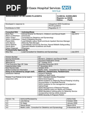 04245 Retained Placenta 4 0 Pdf Midwife Obstetrics